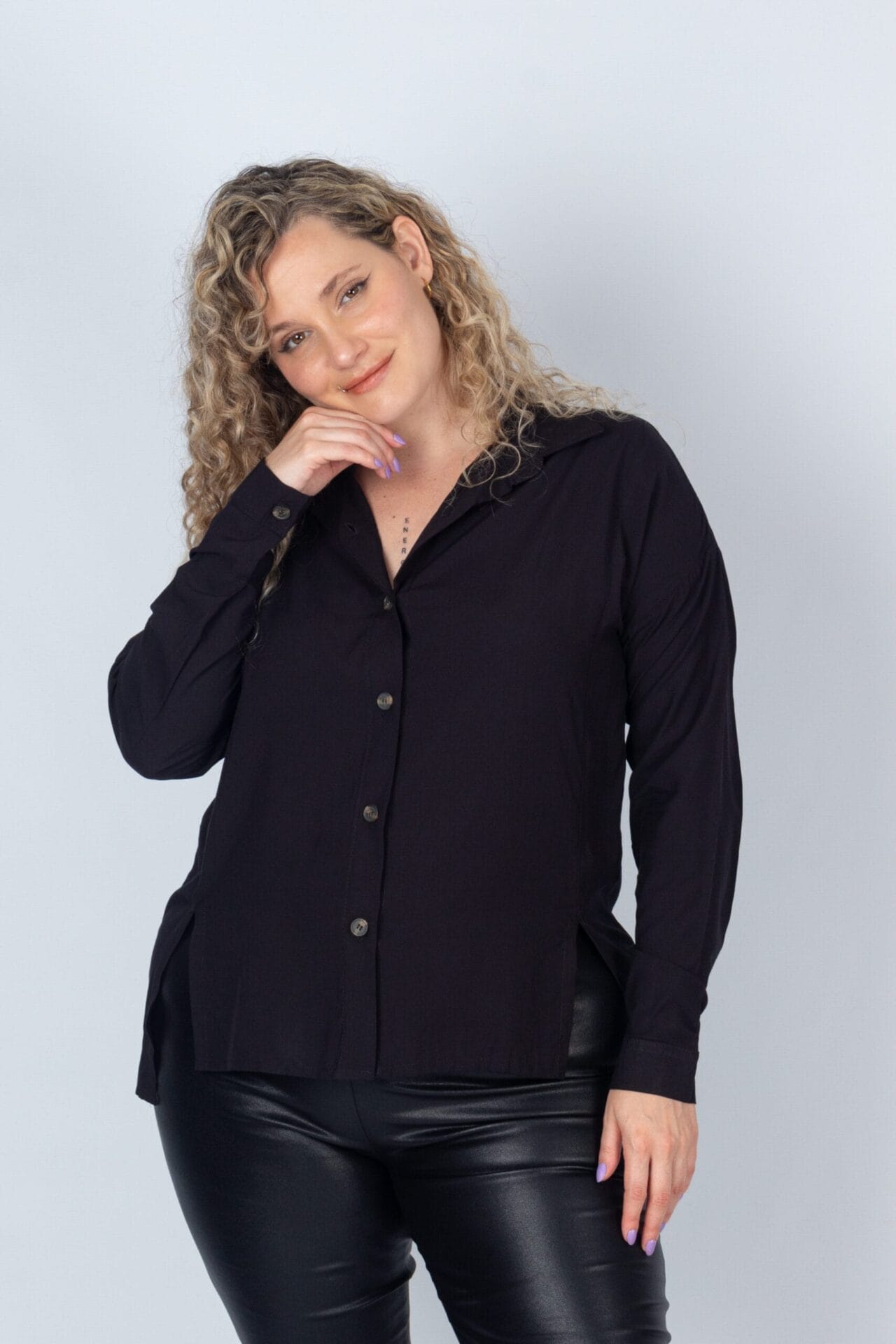 See policiesLa Camisa Paz es el equilibrio perfecto entre la elegancia clásica y la comodidad moderna. Confeccionada en seda satén con lycra de tacto ultra suave, presenta un brillo sutil que ilumina cualquier conjunto. Su moldería incluye pinzas de busto para un entalle femenino y una importante pinza central en la espalda que garantiza amplitud y una caída aérea. Finaliza con amplios tajos laterales y una cartera clásica con botones al tono que sellan su diseño atemporal.