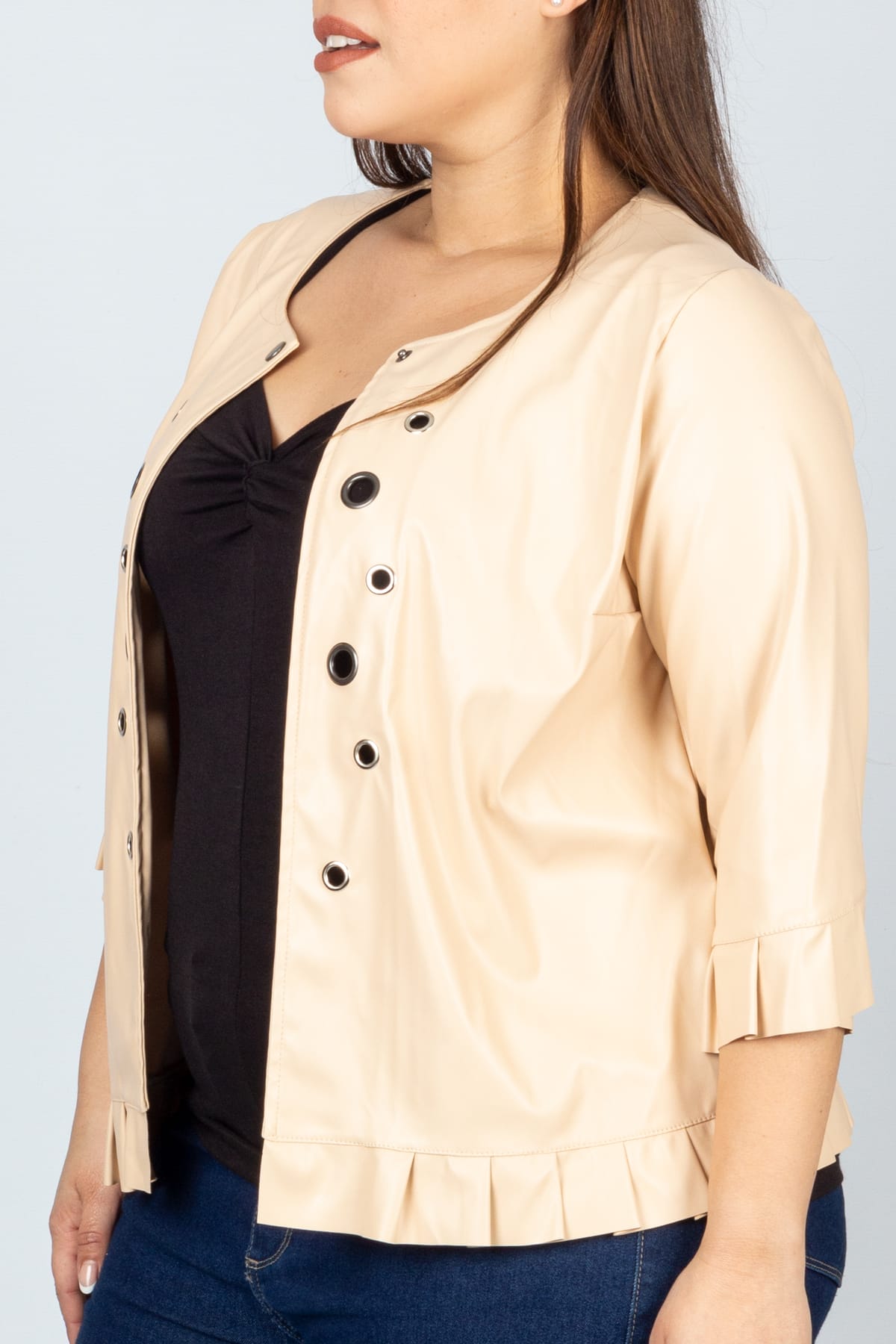 Camisaco de gabardina con spandex con lazo, botón y bolsillo