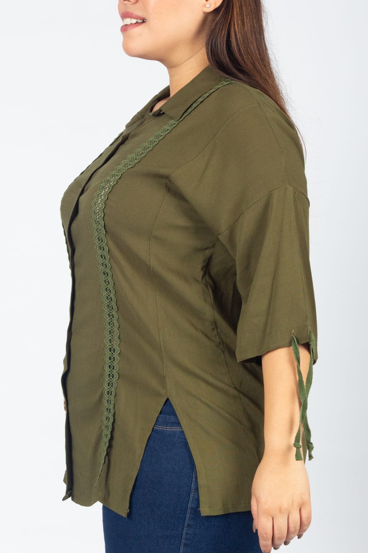 Maxicamisa de poplin rayon liso con broche, bolsillo y tira para arremangar